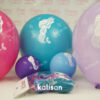 - Mermaid printed latex balloons are available in assorted (mixed) colors with white printing.
