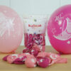 - Printed on 12″ latex balloons weighing 3,2-3,3 grams.