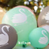 Swan Printed Latex Balloons are in assorted (mixed) colors and the print color is white as standard.