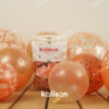 - Floral Printed Latex Balloons are in rose gold or transparent colors with white and gold on rose gold and rose gold on transparent color options.