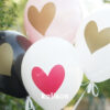 - Heart Printed Latex Balloons are in assorted (mixed) colors with red or gold colored printing.